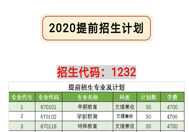专业代码:670102K 专业名称:学前教育(师范类)
