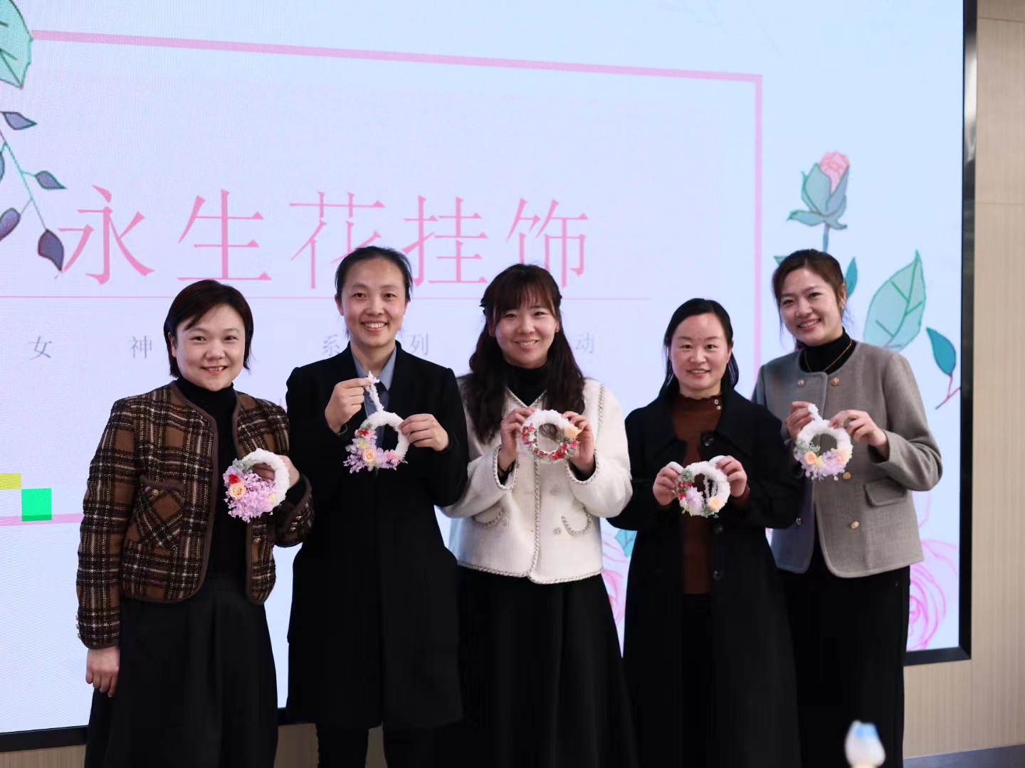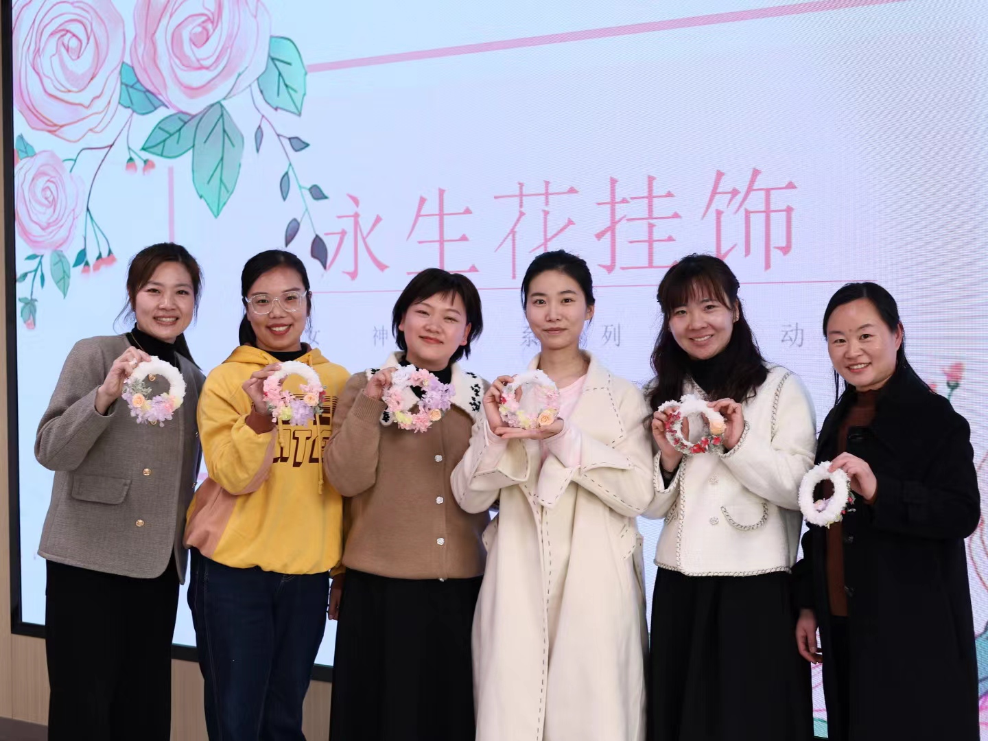每一个花环都是老师们对美的理解,心中的美好像这永生花一般,永远光彩夺目。通过本次活动,公司女教师们度过了一个充实愉快、富有意义的节日,陶冶了艺术情操,体验了动手乐趣。未来,公司的“巾帼力量”将以更加饱满的精神、更加昂扬的姿态投身到新学期的工作中,以更加优异的成绩助力公司高质量发展。