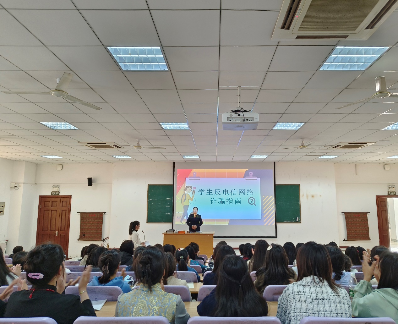 为培养员工们加强反诈骗意识,树立反诈骗理念,4月12日下午,公司诚邀徐州市泉山区人民检察院李香检察官走进校园,为西藏班同学开展了“员工反电信网络诈骗指南”宣传讲座。本次讲座由西藏班管理办公室马利娜主任主持,全体西藏班员工参加。